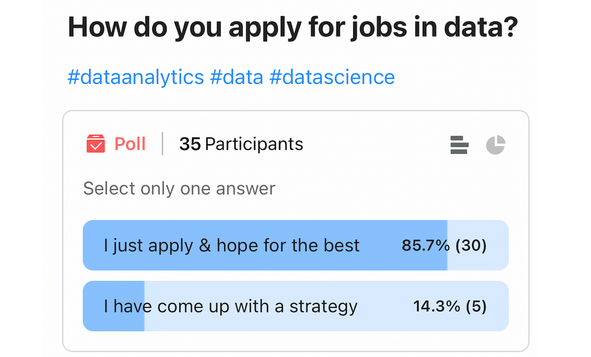 A Spotify Data Scientist’s guide to developing a job-hunting strategy that can get you offers A snapshot of the survey I conducted on Blind — Image by AuthorI recently ran a survey among data scientists and found out this shocking number — 86% are blindly sending out job applications, and hoping for the best. Hoping…